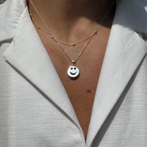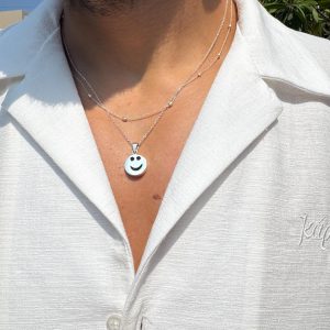 Smiley Face Necklace Mens Pendants Beaded Chain Layers