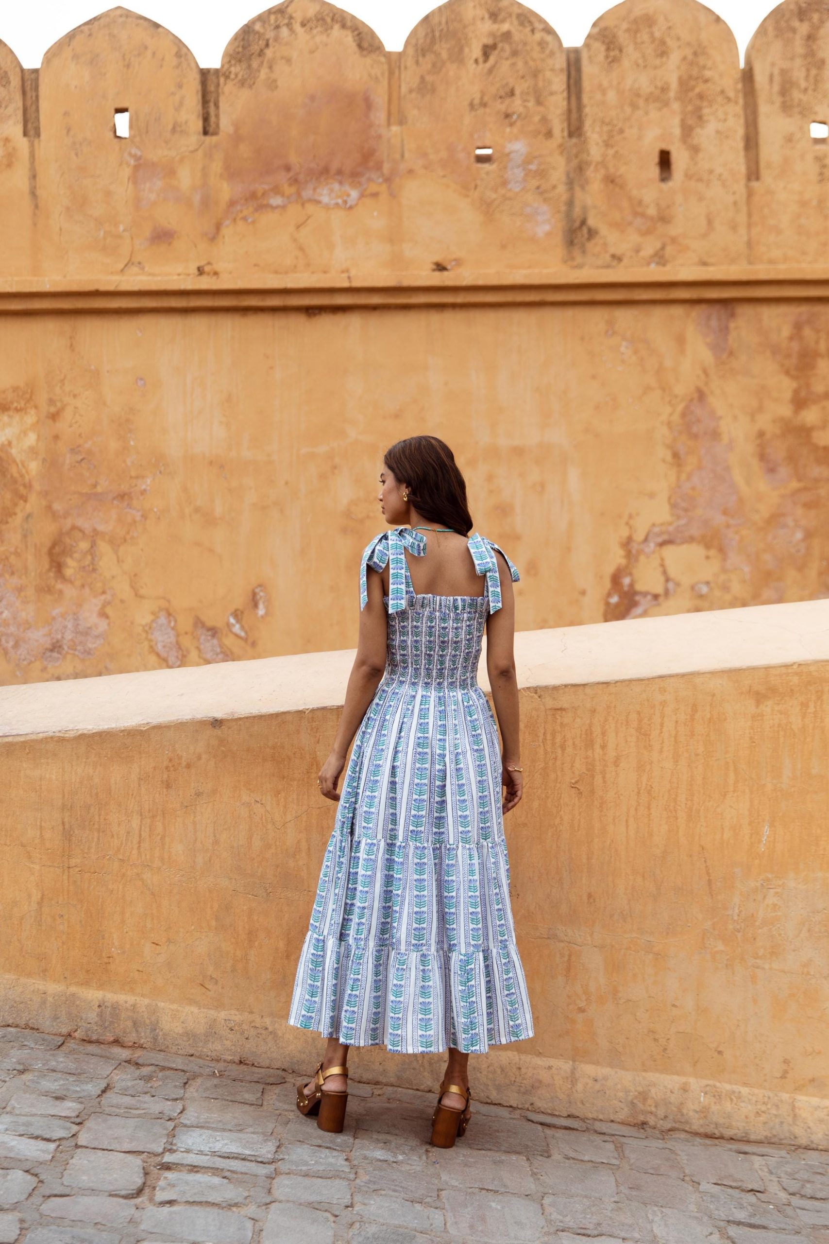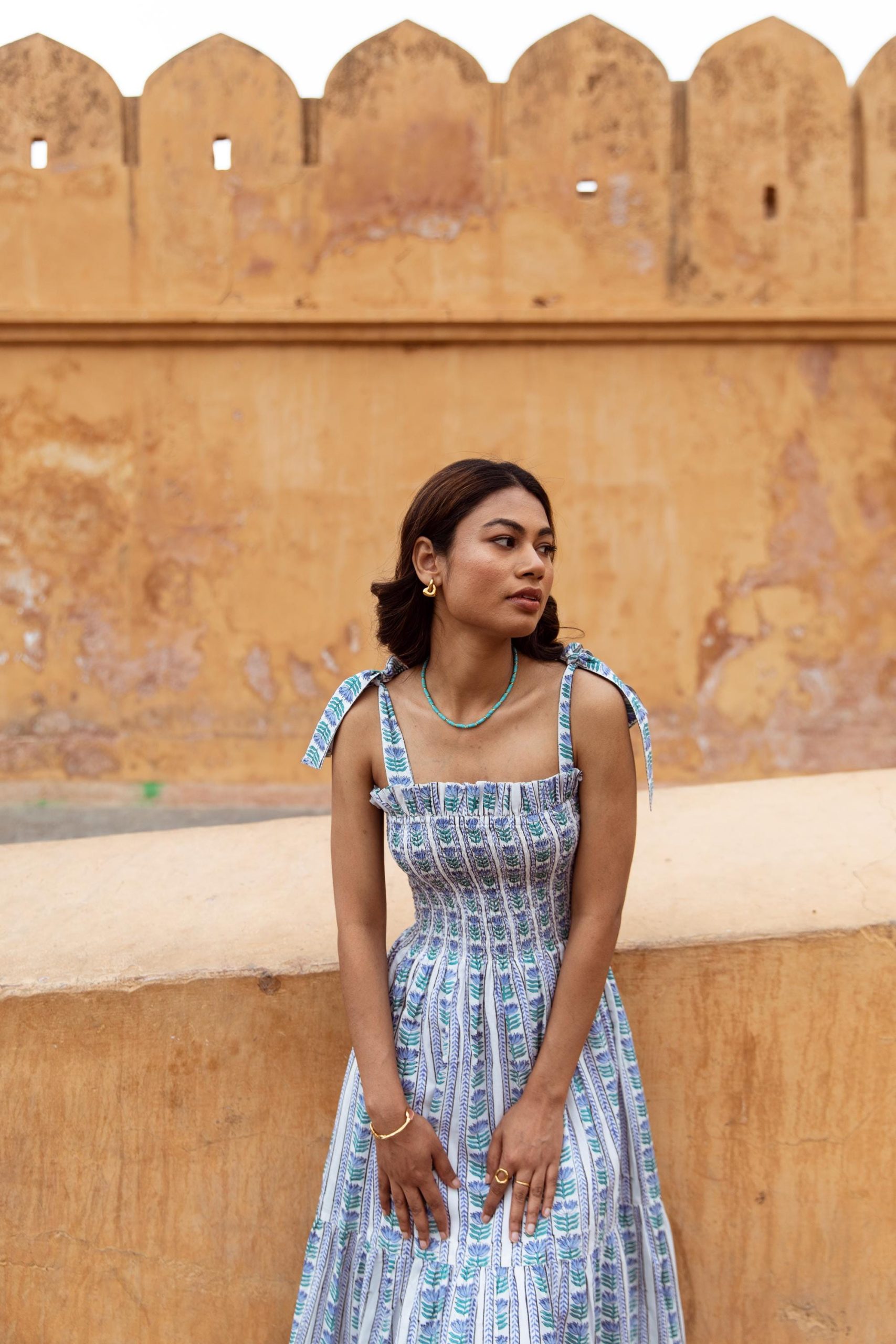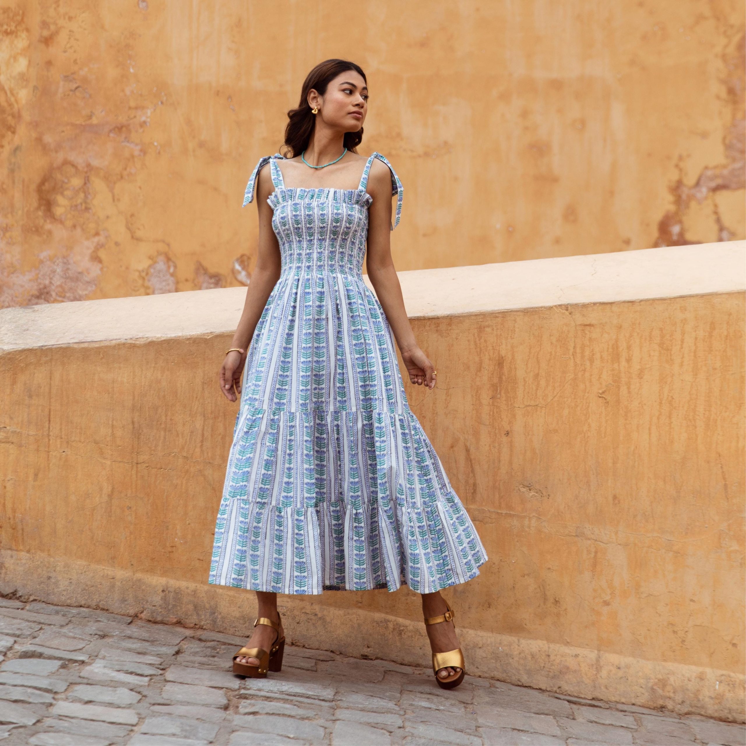 Beautiful sundress, designed in London and made in Jaipur, India, using the traditional art of hand block printing.