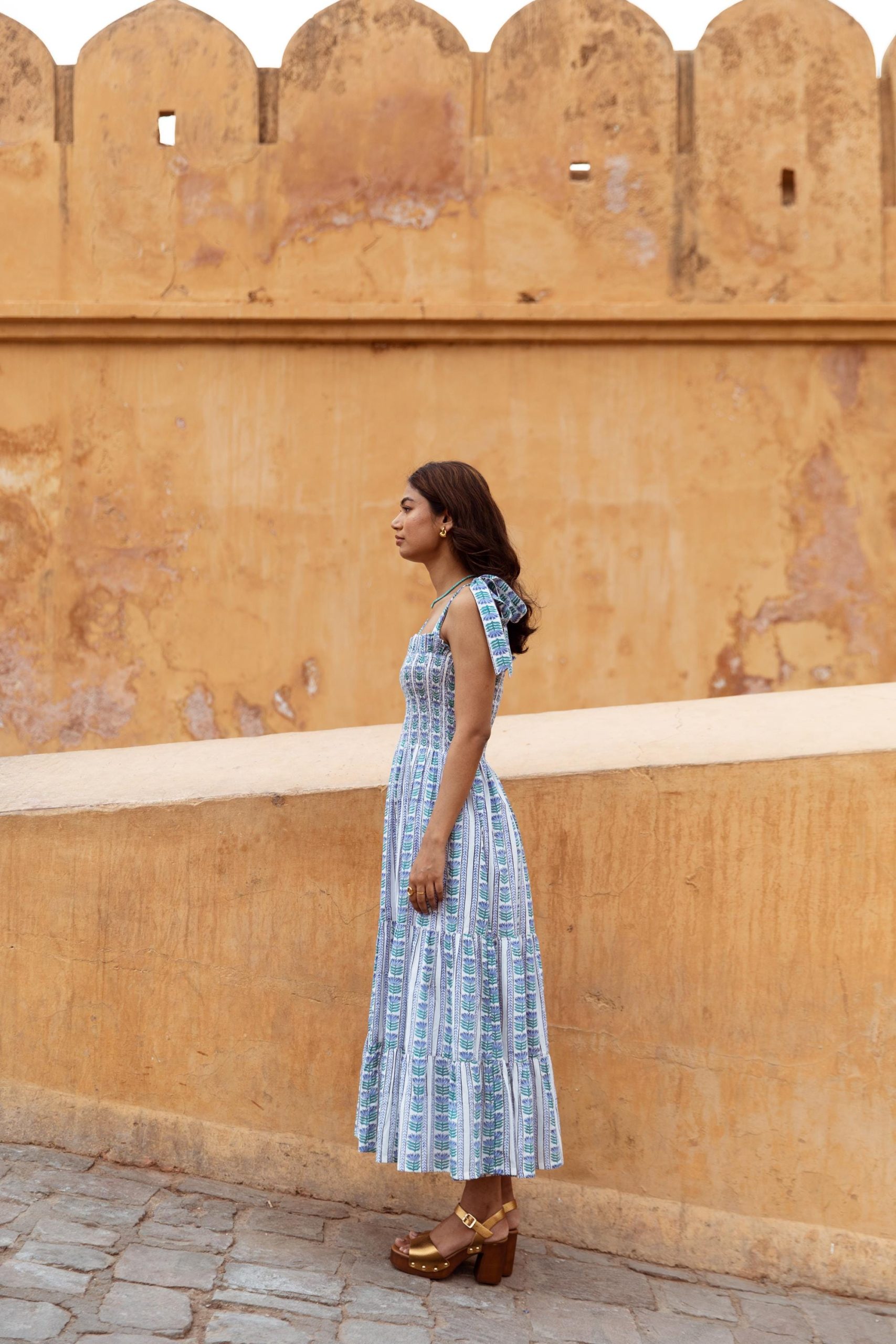 Be the first to review “The Flo Cotton Block Print Sundress Blue &” Cancel reply