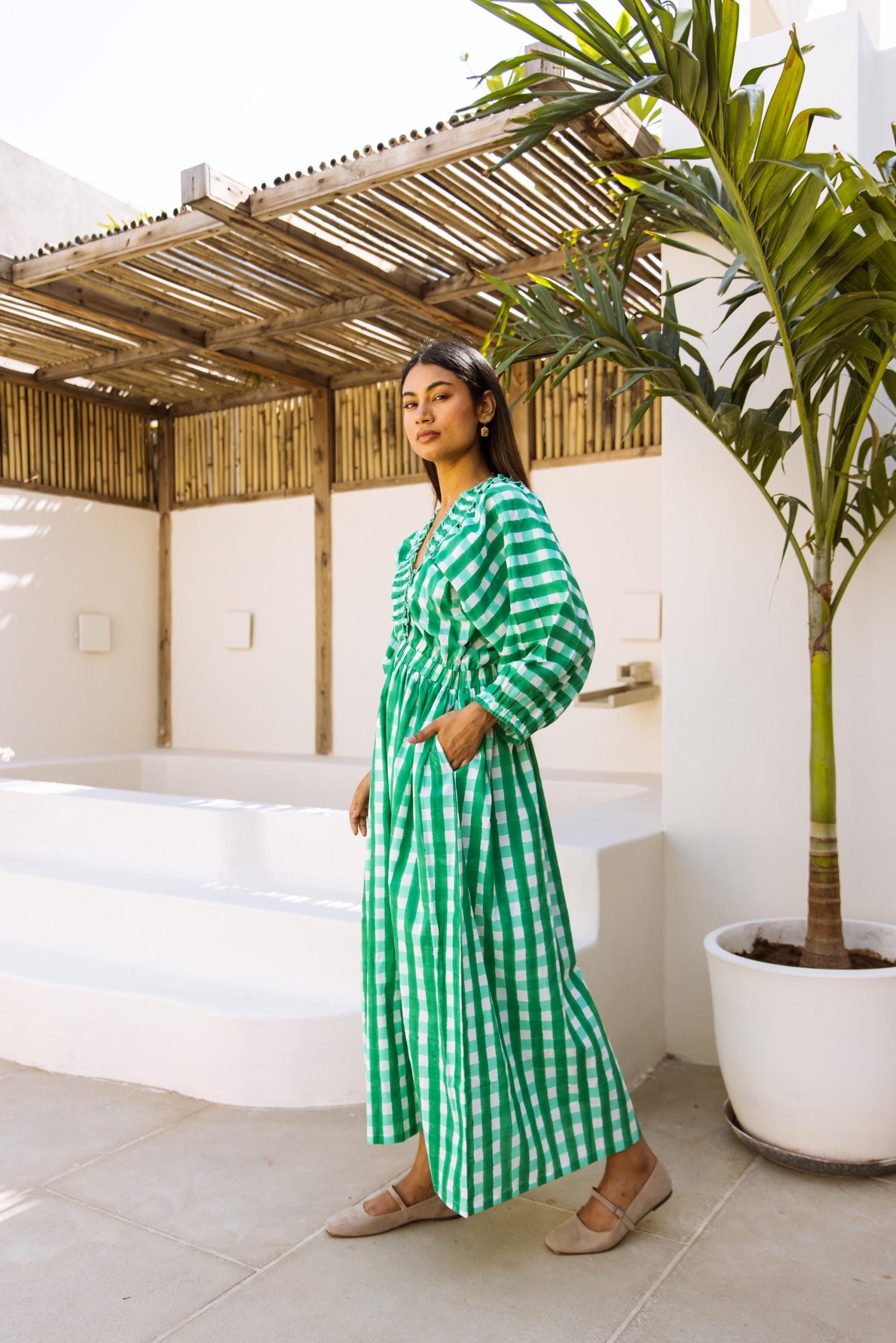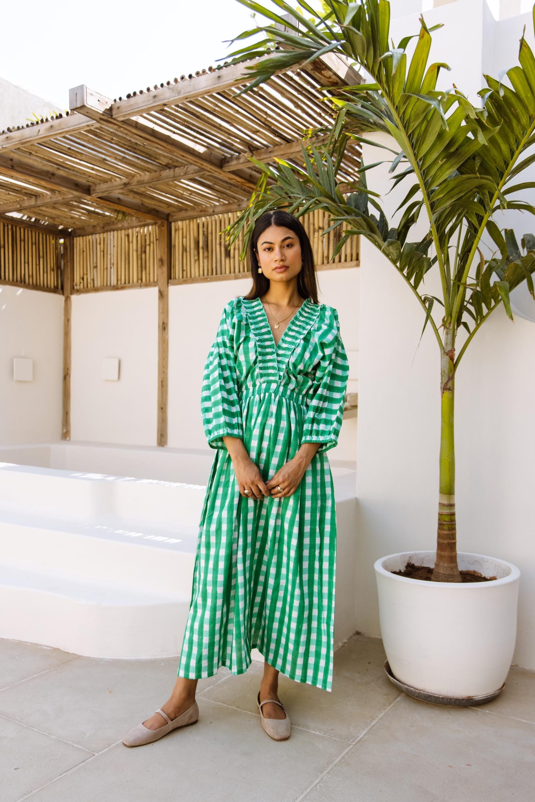 Be the first to review “The Piper Dress Green Gingham Block Print” Cancel reply