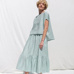 Linen Oversized Top In Green Stripes Offon Clothing