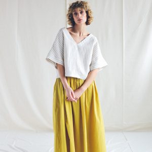 Oversized V Neck Linen Blouse And Wide Leg