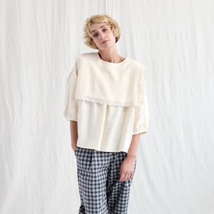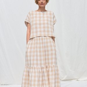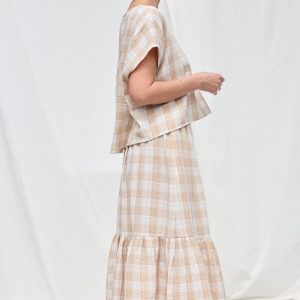 Oversized Top In Beige Double Gauze Checks Offon