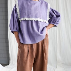 Oversized Large Collar Lavender Linen Blouse Amelia Offon