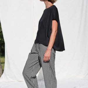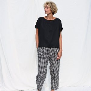 Oversized Top In Pink Double Gauze Checks Offon